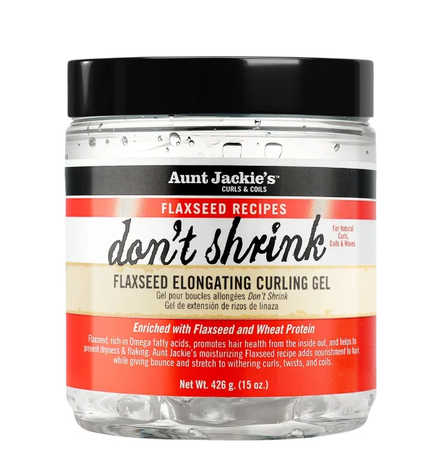 Aunt Jackie’s Don’t Shrink Elongating Curling Gel 15oz helps stretch curls, reduce shrinkage, and improve curl definition with flexible hold.